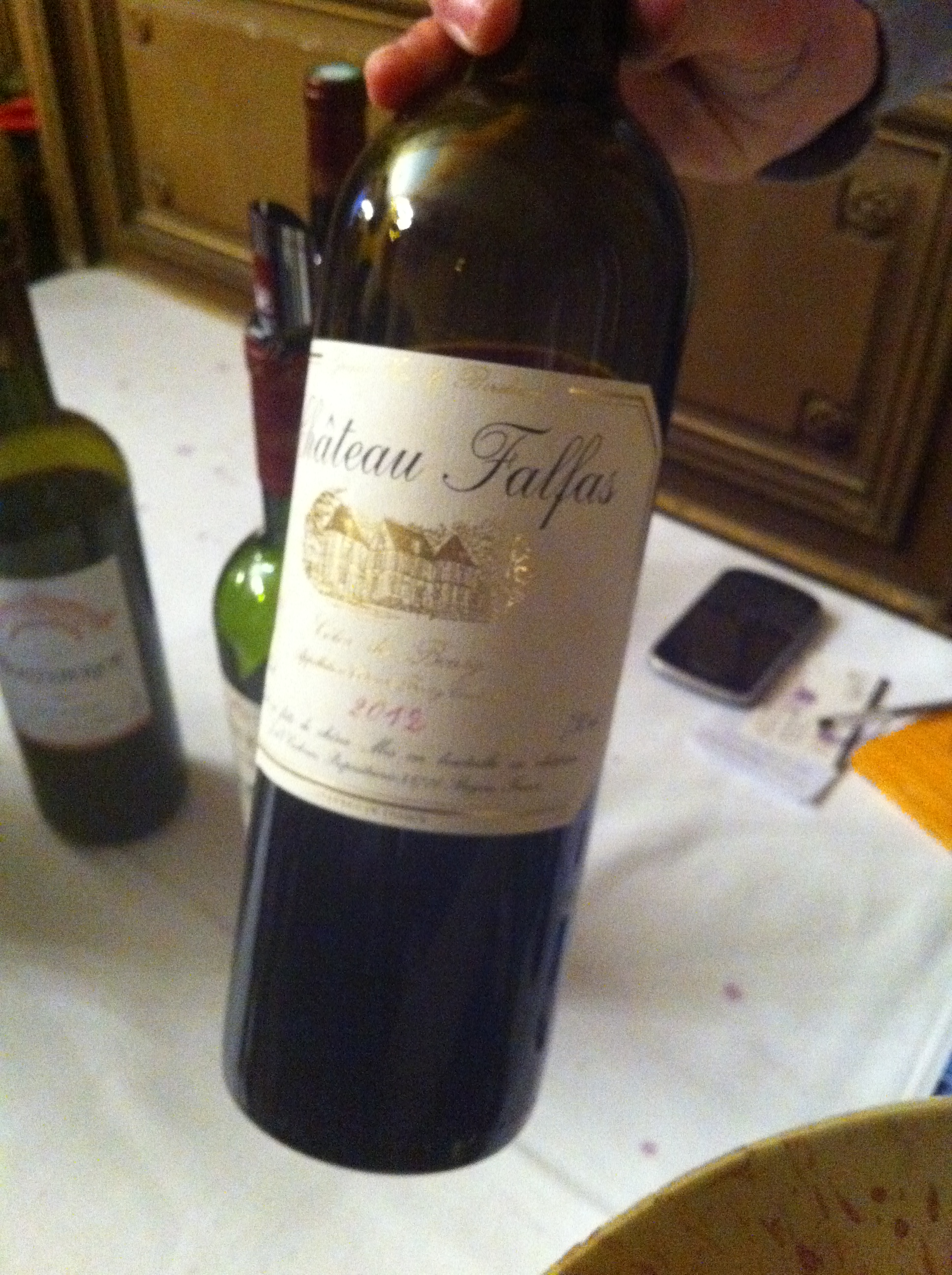 1. Hôm qua mình thử dòng thứ cấp Demoiselles của Châteaux Falfas năm 2011, thực sự thất vọng vì mùi hương nặng nề da thuộc khiến hương hoa quả bị phủ lấp không còn độ tươi trong, vị chua quá cứng, vị chát ít nên cấu trúc lỏng lẻo. Chỉ sau 2 năm ủ mà không còn đủ độ chát để duy trì. Có lẽ do dòng rượu thứ cấp? Chai Falfas mình thử trong en primeur 2012 là dòng rượu cấp 1. Hi vọng 2 năm nữa thử lại sẽ không gặp nỗi thất vọng này.
